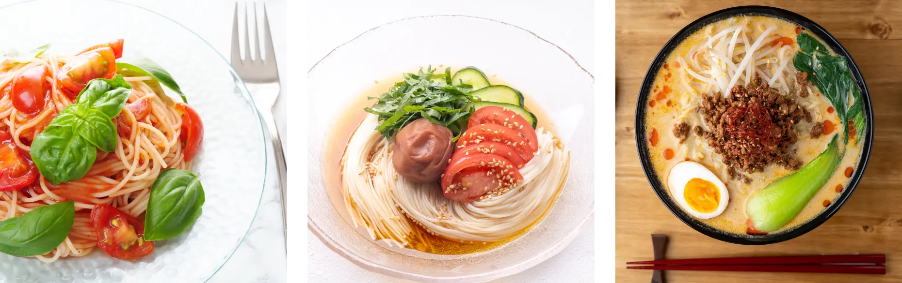 汁気の多いメニューですとめん本来のつるつるもちもちとした食感をより一層感じやすくおすすめです。